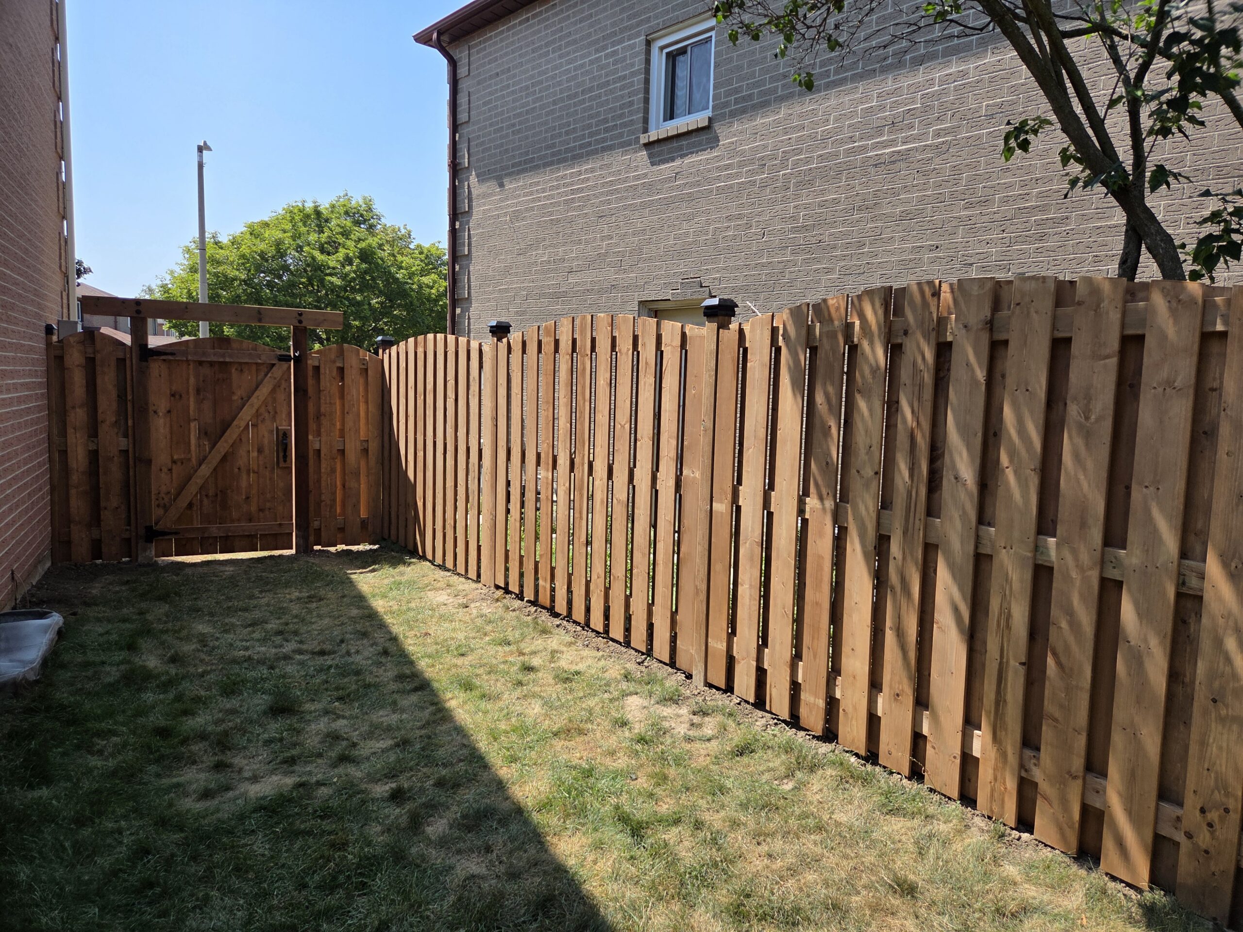 At Quality Woodworks, we recently completed a beautiful scalloped top wood fence installation in Oshawa, showcasing our attention to detail and custom design capabilities. This elegant, curved-top style adds a decorative touch while maintaining full privacy and durability. Built with pressure-treated lumber, this fence combines style, function, and long-lasting protection — perfect for enhancing curb appeal in any Oshawa neighbourhood.